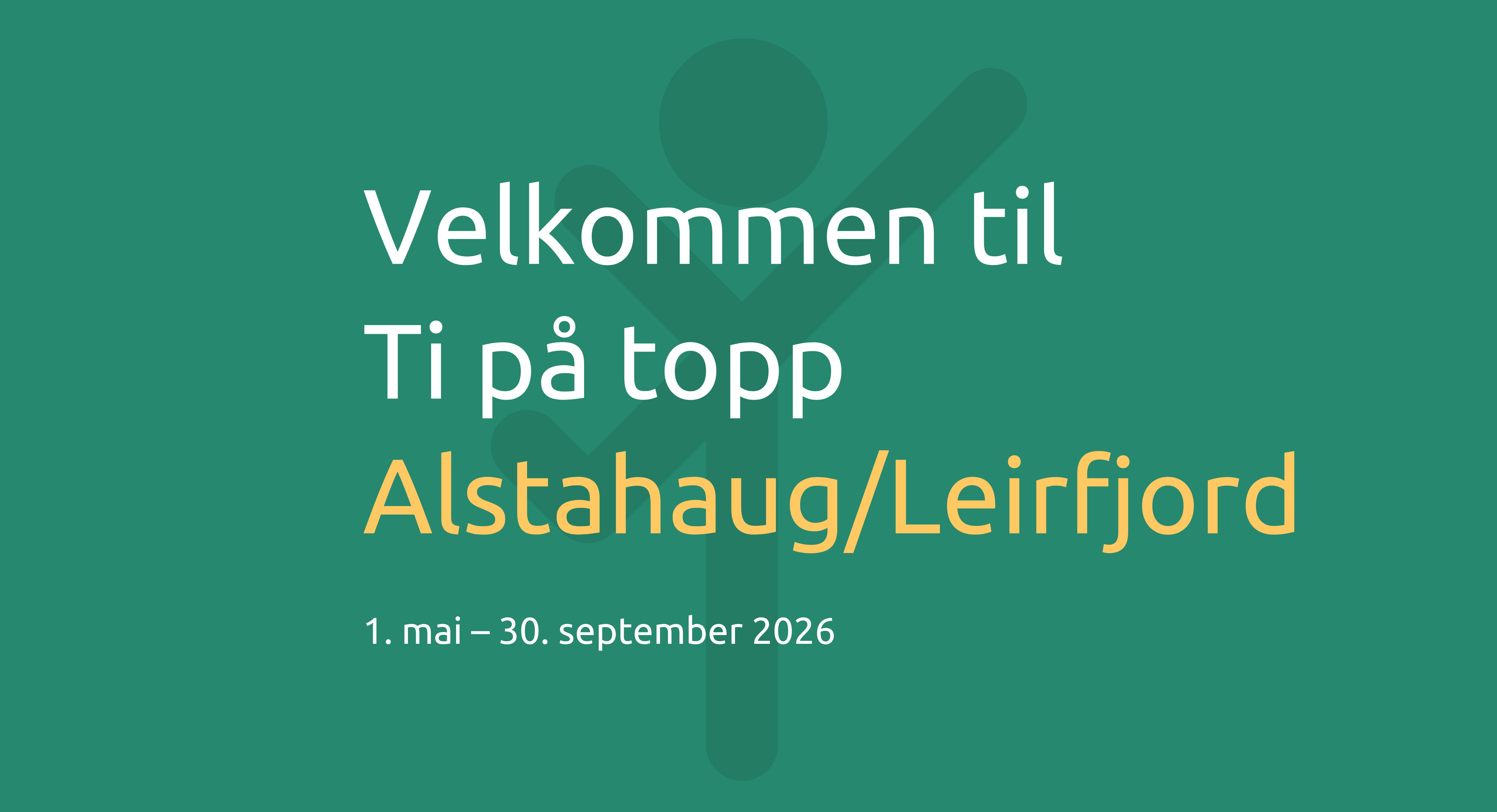 Ti på topp er et godt tilrettelagt turtilbud hvor du, familie, venner eller kolleger kan få påfyll og oppleve noe av det beste naturen i Alstahaug og Leirfjord har å by på.